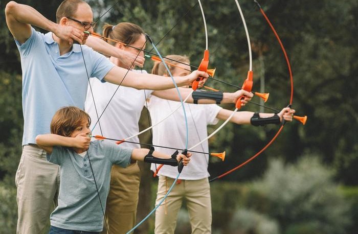 Quelle belle découverte faite lors d’un anniversaire chez un copain de mon fils, le tir à l’arc version Décathlon pour les enfants et les adultes pas très doués. Il y a tout ce qu’il faut pour débuter dans le pack. Le tarif est de 40 euros. Vous trouverez à l’intérieur 2 flèches, un arc, la corde de l’arc et la cible imprimée sur la valise qui contient le tout.